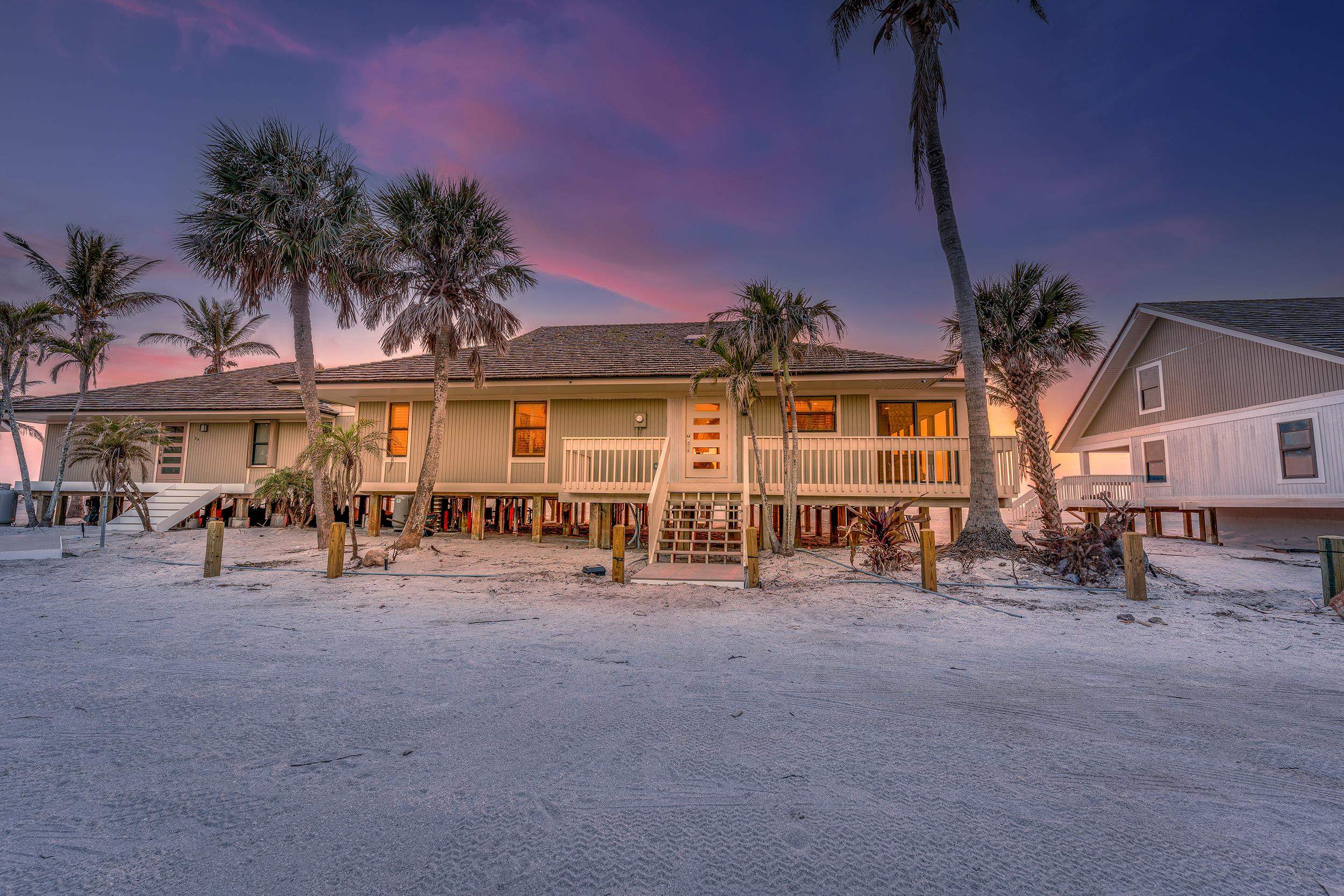 Experience unparalleled luxury and coastal elegance at 19 Beach Homes, a stunning direct Gulf-front, elevated, 3 Bedroom + Den, 3 Bathroom residence situated within on the coastline of Captiva. Completely redesigned and renovated in 2022, this breathtaking home offers top-of-the-line finishes and modern upgrades that blend seamlessly with the serene, natural beauty of its beachfront setting. Step inside to discover an open-concept living space adorned with luxury vinyl flooring, setting the tone for both durability and sophisticated charm. The custom floating staircase serves as a striking architectural centerpiece, enhancing the home’s modern aesthetic while maximizing space and light. Designed for both style and functionality, the kitchen boasts custom wood cabinetry, thick quartz cabinetry, high-end stainless steel appliances, and a gas cooktop…Gulf-front cooking at its finest! The coastal-inspired furnishings create a relaxed yet refined atmosphere, perfectly complementing the breathtaking views from nearly every room. Expansive impact-resistant windows flood the home with natural light while providing peace of mind and energy efficiency. Step outside onto the composite decking, where you can unwind and take in the gentle sea breeze or enjoy direct beach access just steps away. Nestled inside the gated South Seas Resort, this exceptional property offers unmatched privacy and access to pristine Florida beaches. Whether you're looking for a serene retreat or a luxurious investment opportunity, 19 Beach Homes is a rare gem that perfectly captures the essence of Gulf-front living on Captiva Island.