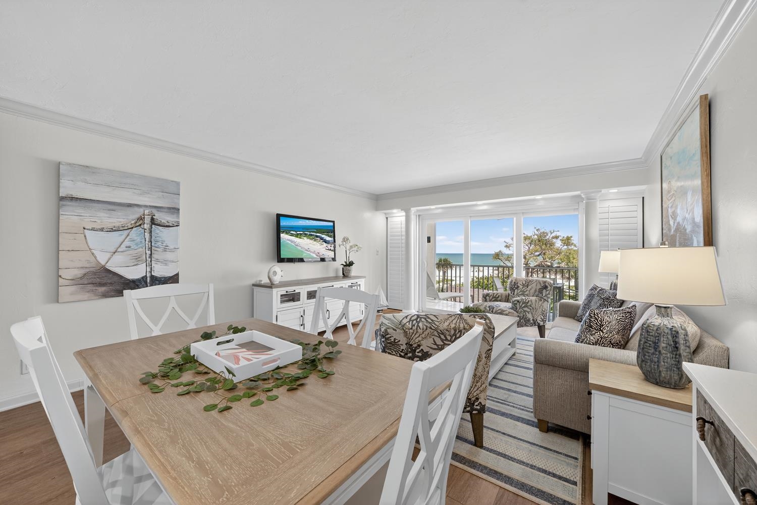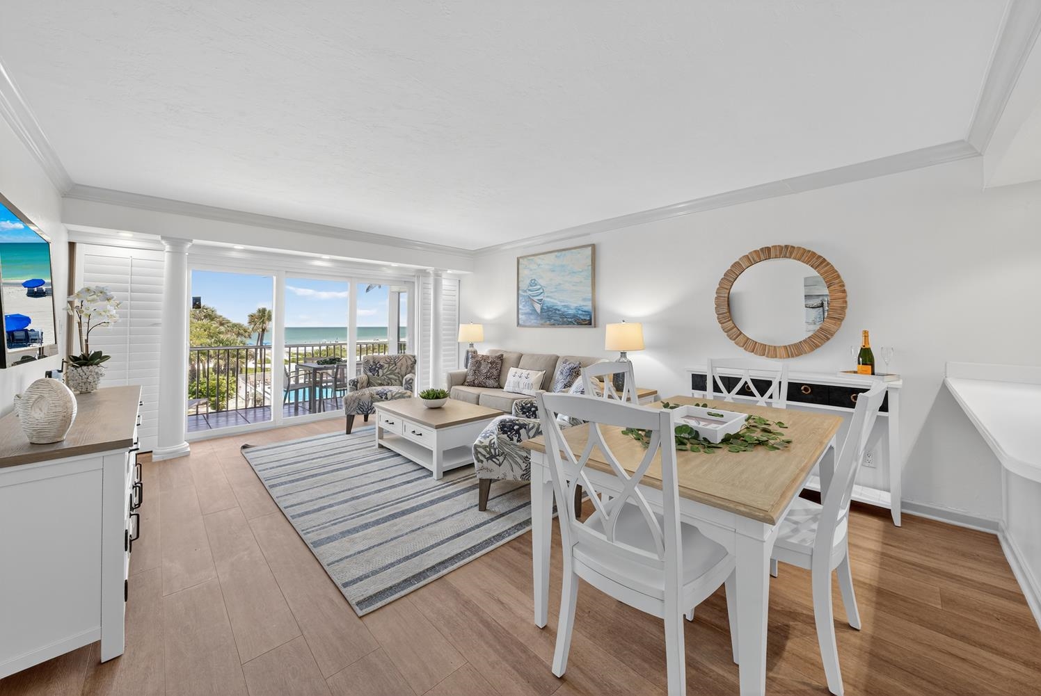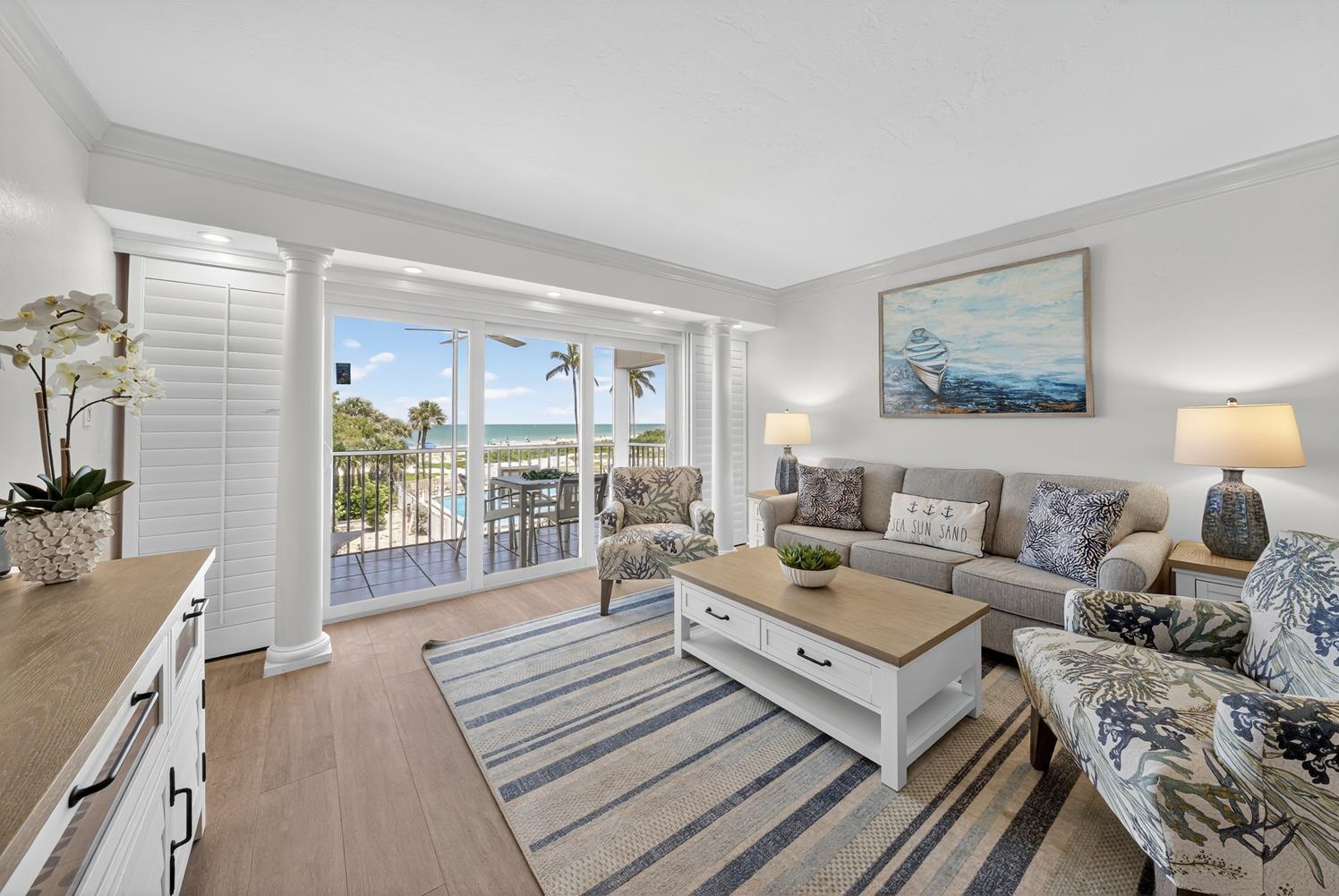 Step into island sophistication with this beautifully renovated one-bedroom retreat, tucked within the private gates of South Seas Resort. Perched on the second floor, this fully furnished condo pairs breezy coastal style with modern upgrades and impressive rental potential. Inside, an airy open-concept design welcomes you with warm luxury vinyl floors, updated counters, stainless steel appliances, a double-wide sink, and designer LED lighting. Floor-to-ceiling hurricane-rated sliders frame tranquil Gulf views and open to your private screened lanai—the ideal perch for sunset cocktails and salty breezes. Perfectly located on the sought-after South End of the resort, you’re just a short stroll to Captiva Village, boutique shopping, and beloved dining favorites. As part of Beach Villas, residents enjoy community grills, a sparkling pool, and tennis/pickleball courts, blending leisure with lifestyle. Whether you seek a personal hideaway, a high-performing rental, or both—2523 Beach Villas is an opportunity to own a rare slice of Captiva paradise.