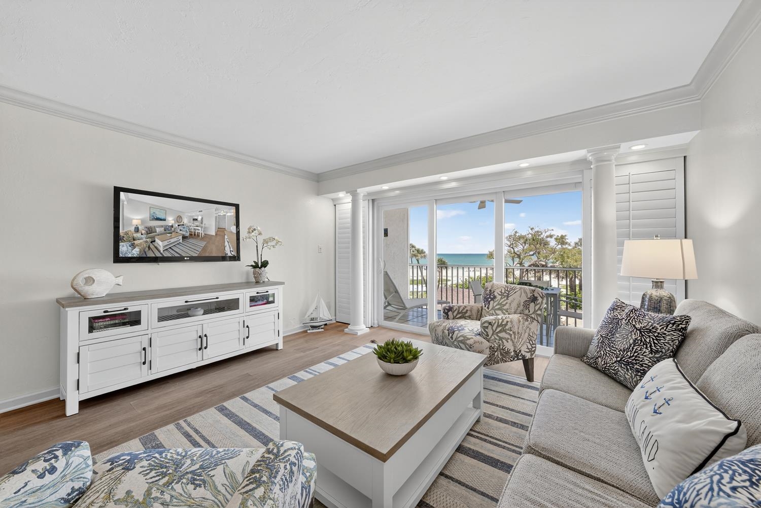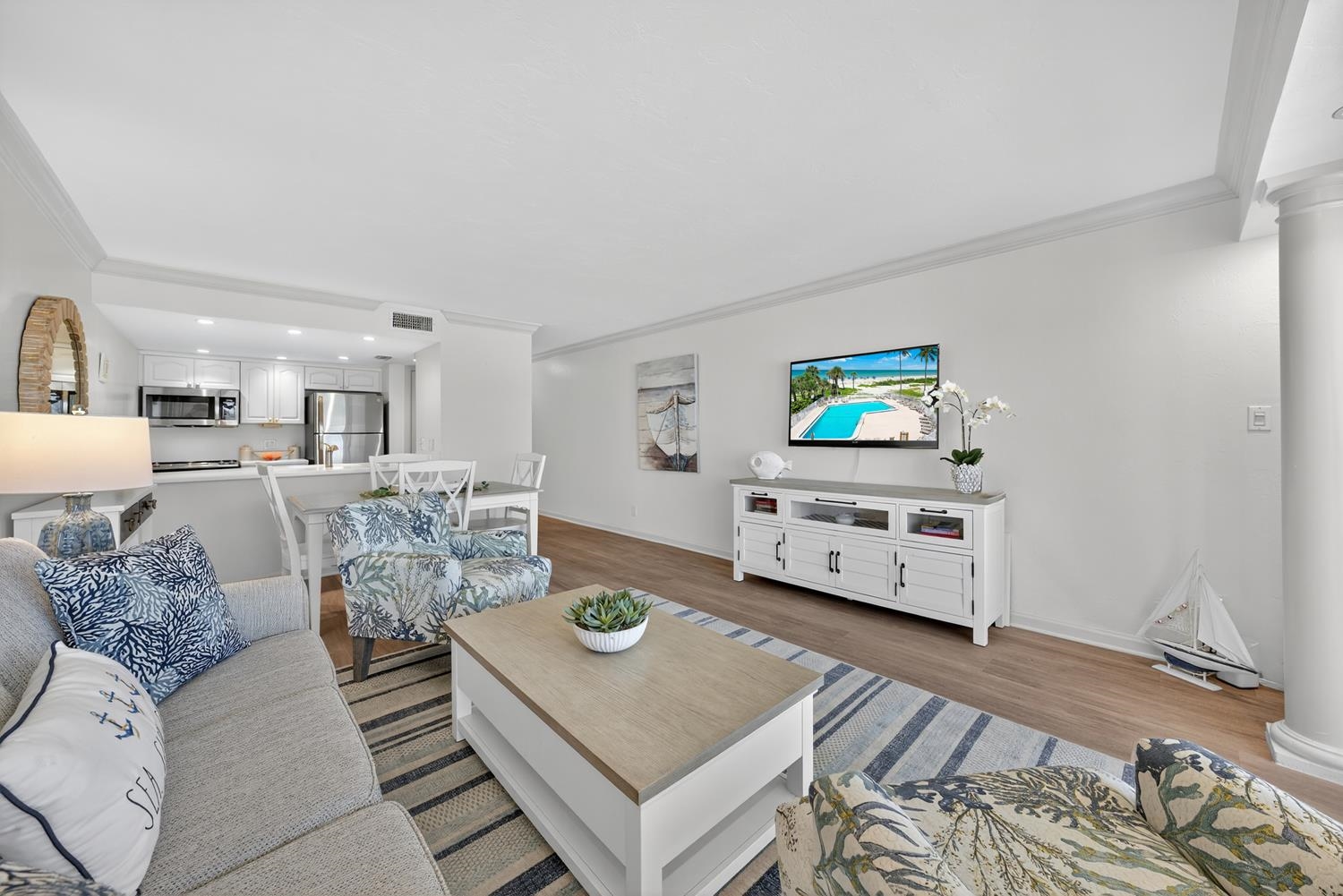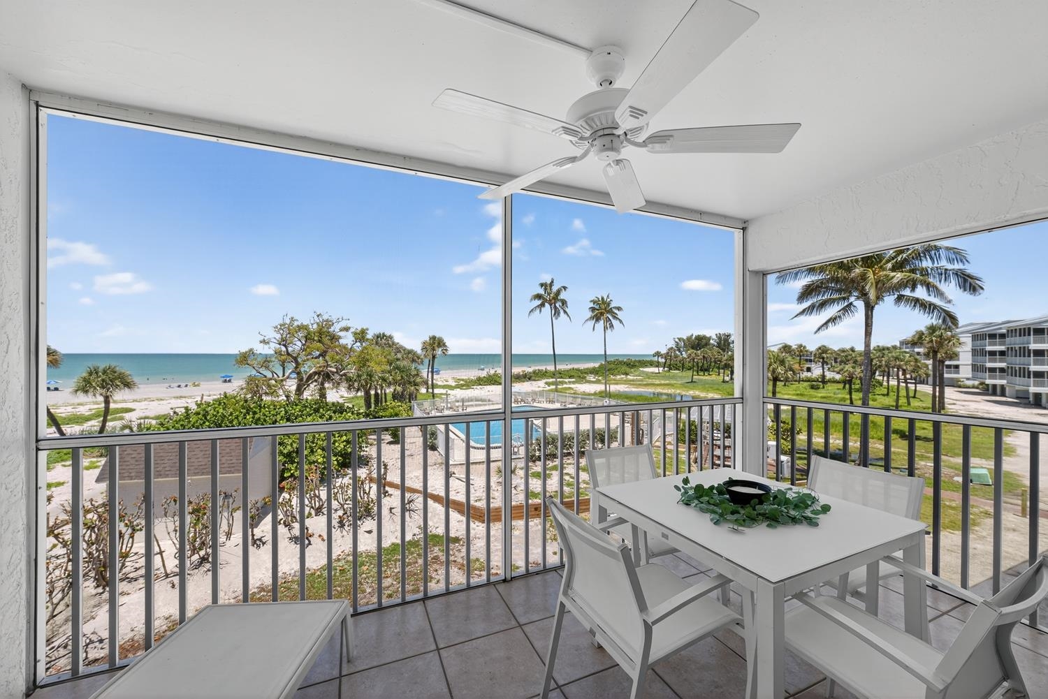 Step into island sophistication with this beautifully renovated one-bedroom retreat, tucked within the private gates of South Seas Resort. Perched on the second floor, this fully furnished condo pairs breezy coastal style with modern upgrades and impressive rental potential. Inside, an airy open-concept design welcomes you with warm luxury vinyl floors, updated counters, stainless steel appliances, a double-wide sink, and designer LED lighting. Floor-to-ceiling hurricane-rated sliders frame tranquil Gulf views and open to your private screened lanai—the ideal perch for sunset cocktails and salty breezes. Perfectly located on the sought-after South End of the resort, you’re just a short stroll to Captiva Village, boutique shopping, and beloved dining favorites. As part of Beach Villas, residents enjoy community grills, a sparkling pool, and tennis/pickleball courts, blending leisure with lifestyle. Whether you seek a personal hideaway, a high-performing rental, or both—2523 Beach Villas is an opportunity to own a rare slice of Captiva paradise.